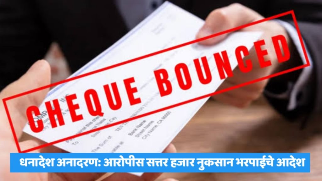 वैजापूर: येथील वैजापूर नागरी सहकारी पतसंस्था वैजापूर कडून कर्ज म्हणून घेतलेल्या रकमेच्या परताव्यासाठी दिलेला धनादेश न वटता अनादरीत होऊन परत आल्या प्रकरणी आरोपीस रूपये 70,000/- हजार रुपये नुकसाभरपाई फिर्यादी वैजापूर नागरी सहकारी पतसंस्था वैजापुर लां द्यावी व रक्कम नाही भरल्यास अतिरिक्त 1 महिने साध्या कारावासाची शिक्षा असे आदेश मुख्य न्यायदंडाधिकारी तथा 3 रे दिवाणी न्यायाधीश वरिष्ठ स्तर श्री डी. एस. पिसाळ यांनी दिले.