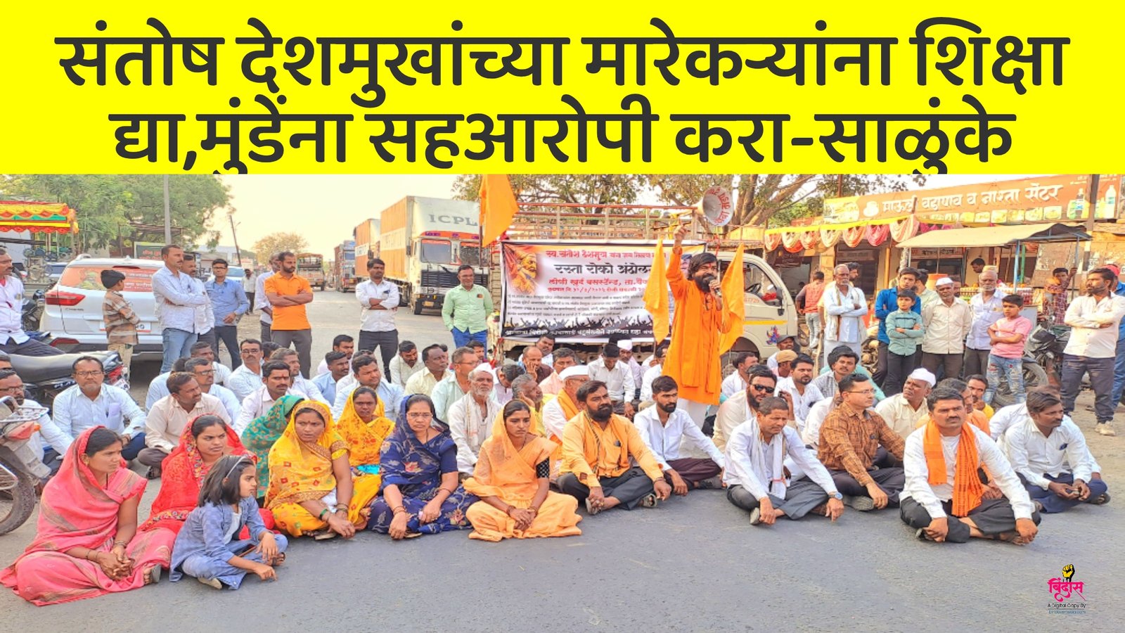 संतोष देशमुख हत्या प्रकरणात गुंडाना साथ देणारांवर गुन्हे दाखल करा देशमुखाना न्याय द्या धनंजय मुंढे वाल्मीक कराड यांना सह आरोपी करुन त्यांच्या गुंडांना फाशी द्या आशा गुंड प्रवृतिचा बंदोबस्त करावा तसेच आरोपींना वाचवण्यासाठी आंदोलन मोर्चे व सोशल मीडियावर समर्थन करु दहशत निर्माण करतील त्यांच्यावर देखील गुन्हे दाखल करावे असे हिंदवी जन क्रांती सेनेचे अध्यक्ष आंदोलनकर्ते अजय यांनी दिली आहे.